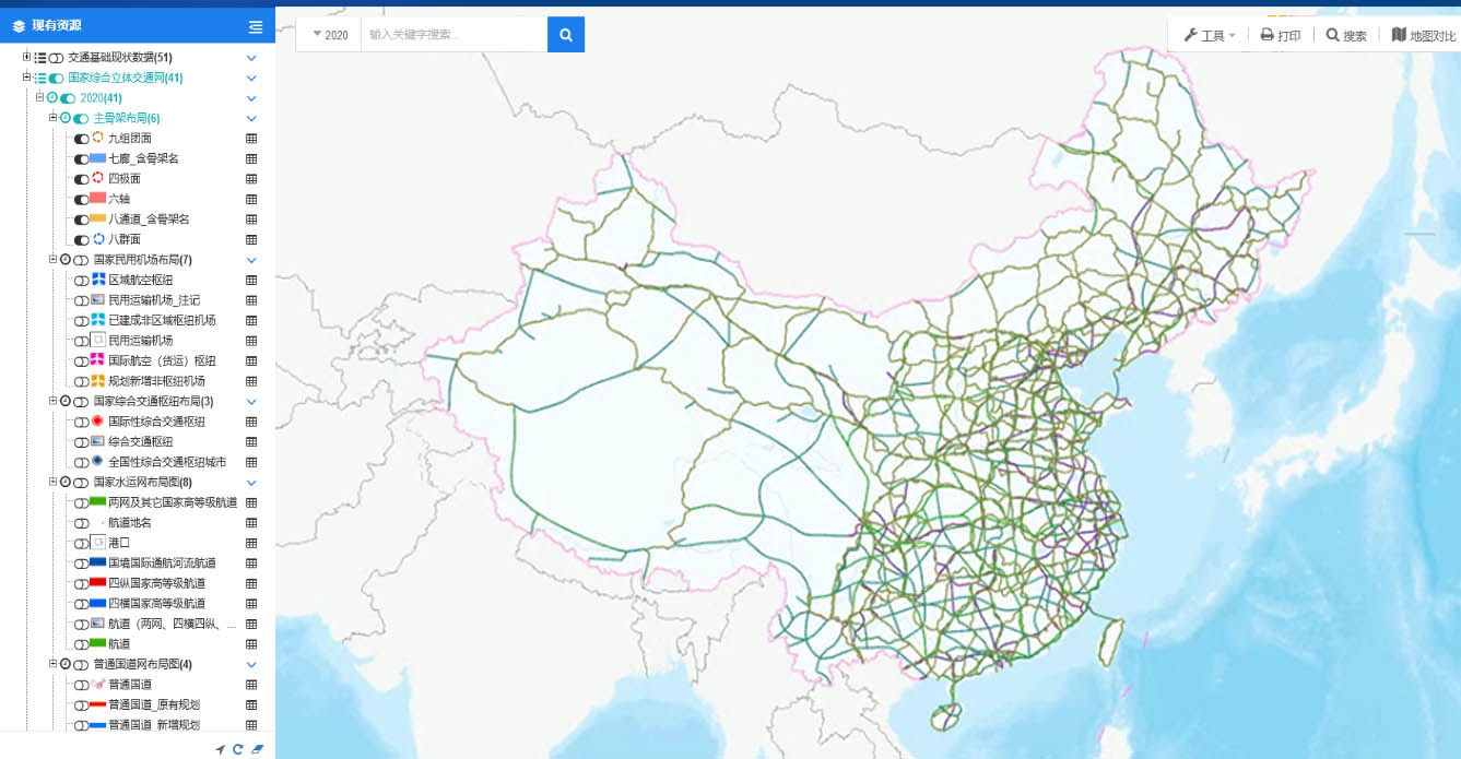 為貫徹落實(shí)國家數(shù)字化轉(zhuǎn)型戰(zhàn)略,提升綜合交通規(guī)劃技術(shù)創(chuàng)新能力。建設(shè)行業(yè)“交通規(guī)劃一張圖”,在充分融合國土空間規(guī)劃資源的前提下,實(shí)現(xiàn)全院綜合交通空間規(guī)劃數(shù)據(jù)資源的真正統(tǒng)一和整合,在基礎(chǔ)規(guī)劃數(shù)據(jù)庫基礎(chǔ)上,進(jìn)行可視化支撐平臺建設(shè)。平臺依托規(guī)劃地理信息基礎(chǔ)服務(wù),結(jié)合規(guī)劃指標(biāo)平臺中的各項(xiàng)經(jīng)濟(jì)、人文、交通運(yùn)輸?shù)戎笜?biāo)與規(guī)劃模型計(jì)算成果進(jìn)行基于GIS的交通規(guī)劃輔助制圖與規(guī)劃方案可視化評估。實(shí)現(xiàn)了規(guī)劃現(xiàn)狀資源檢索與可視化、規(guī)劃方案與成果快速制圖、規(guī)劃指標(biāo)數(shù)據(jù)管理、規(guī)劃方案分析研判等功能,帶動了院綜合交通空間規(guī)劃技術(shù)研究的應(yīng)用轉(zhuǎn)化,搶占了新時(shí)期綜合交通運(yùn)輸規(guī)劃咨詢領(lǐng)域制高點(diǎn)。